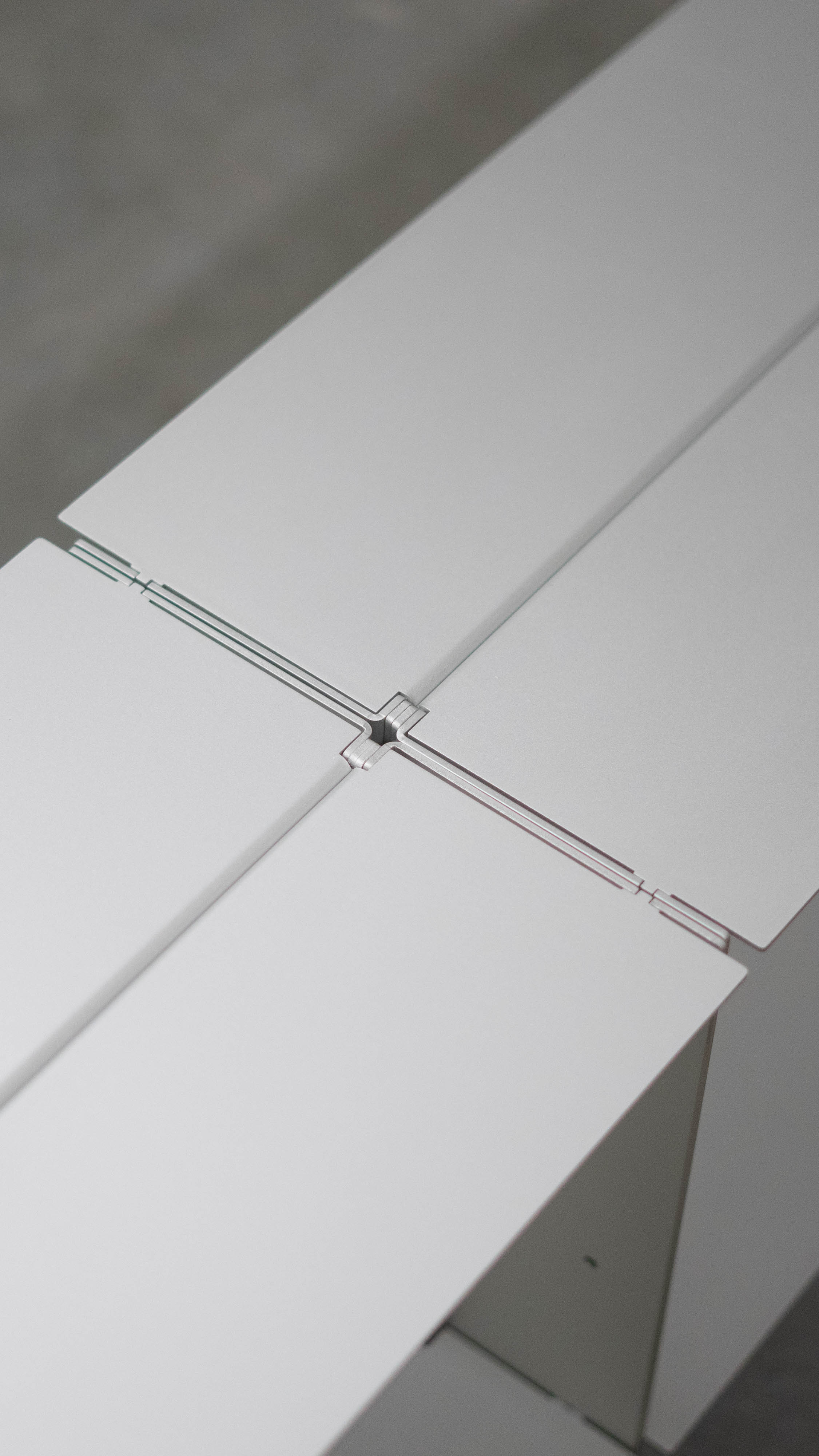 Von beiden Seiten nutzbar, funktioniert das System an der Wand ebenso selbstverständlich wie frei im Raum – und bleibt flexibel für Veränderungen, die mit der Zeit entstehen.